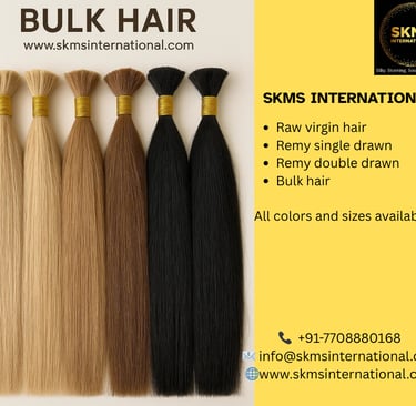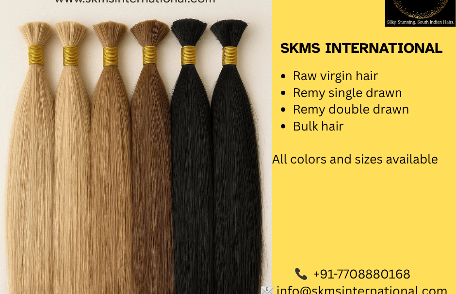 Welcome to SKMS International — your trusted partner for premium quality raw human hair, Remy hair extensions, and wigs, proudly sourced from South Indian temples. As a leading Indian exporter, we serve clients across Europe with ethically sourced, 100% virgin Indian human hair. Our products are highly sought after for their natural texture, longevity, and unmatched quality.